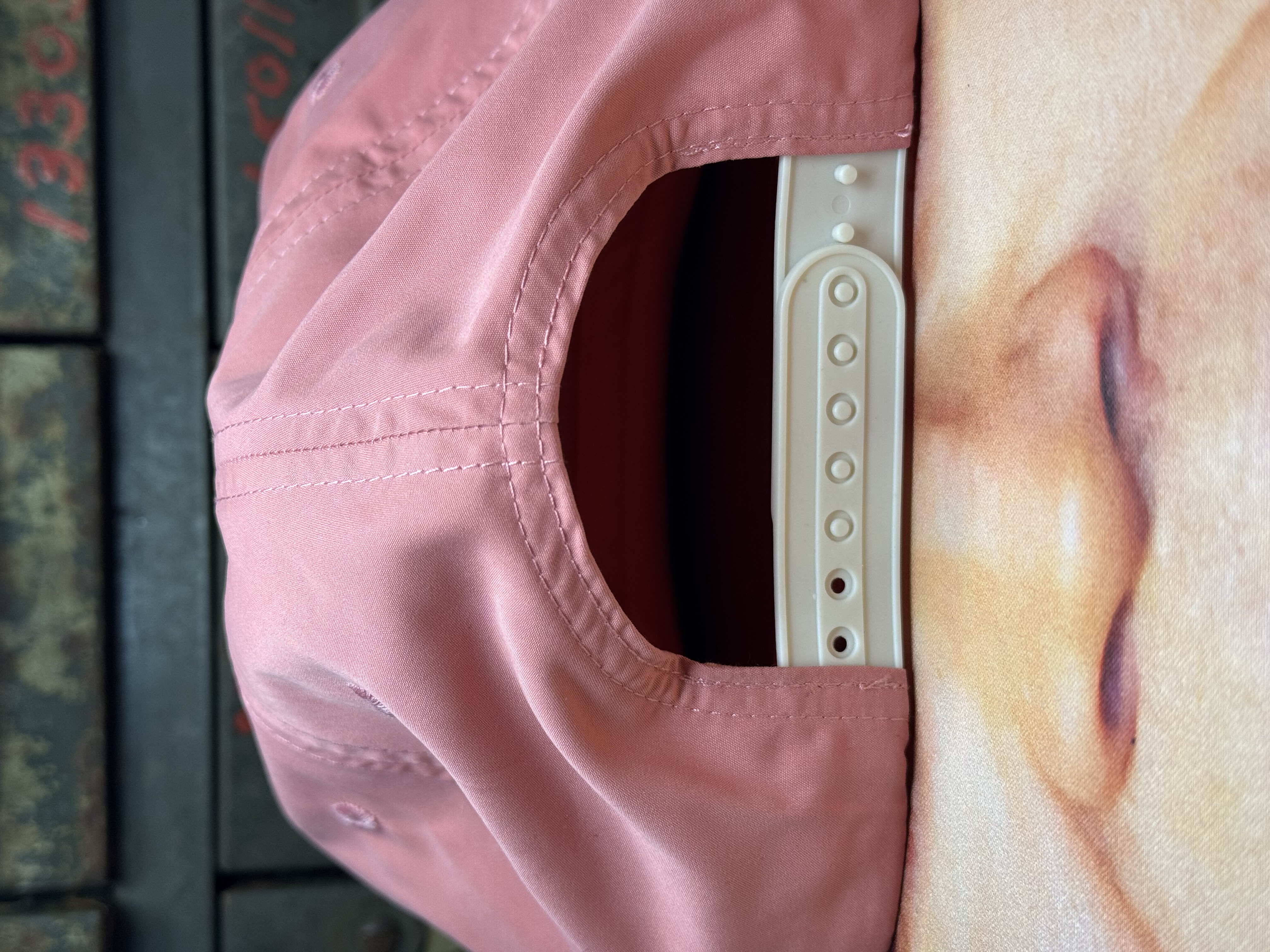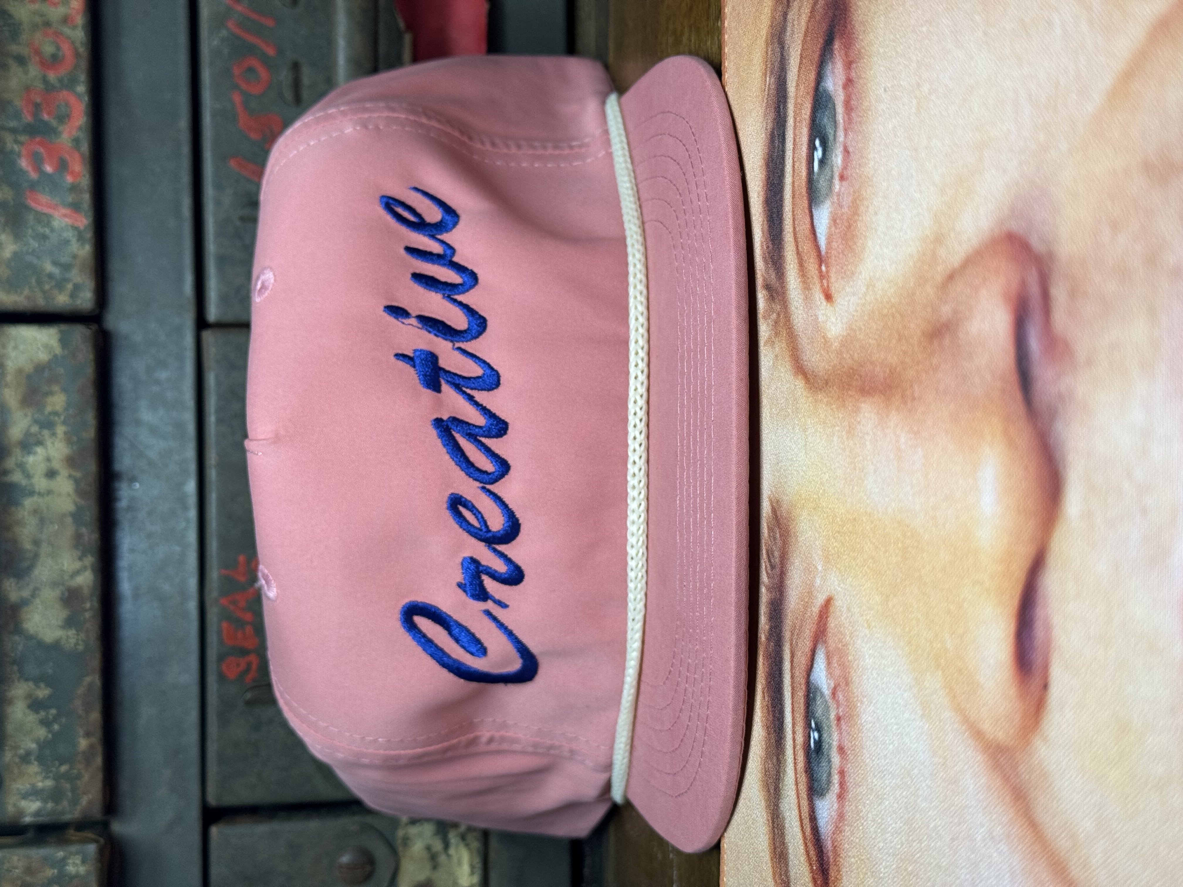 CREATIVE salmon w/ blue stitch SnapBack hat
