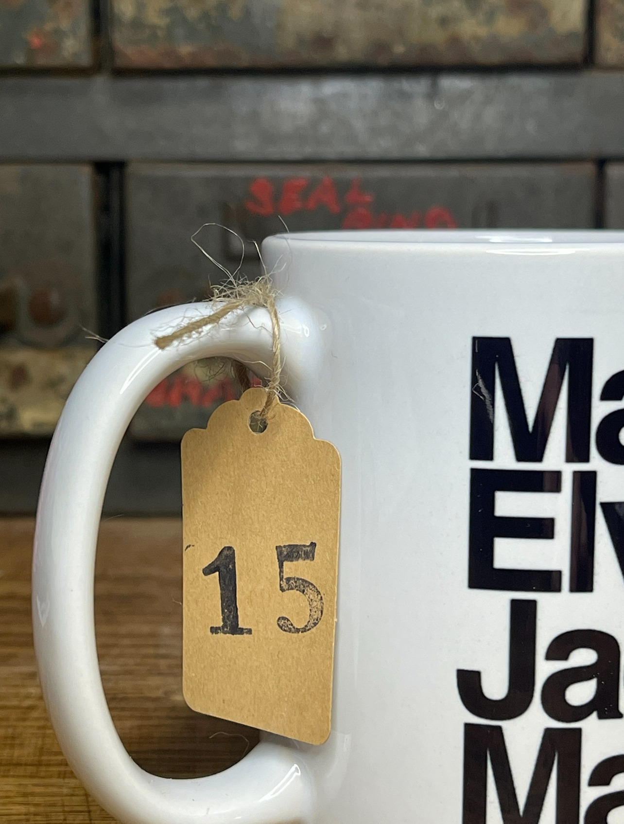 Each mug will come w/ a hand stamped 15 year tag and set of stickers.